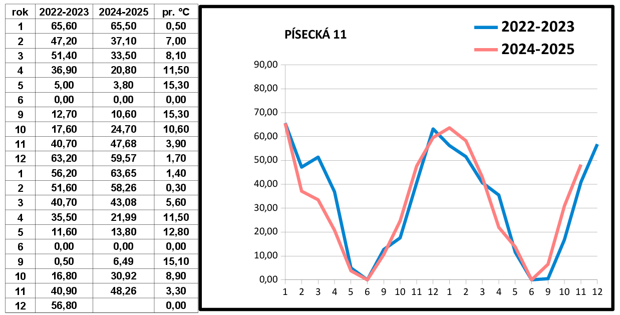 POROVNÁNÍ SPOTŘEBY TEPLA (GJ) VYTÁPĚNÍ DOMŮ (aktualizace : 11)